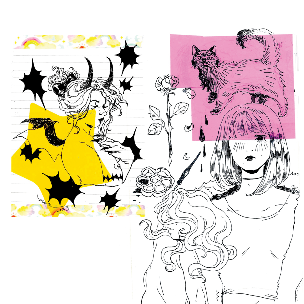 an 18 page pdf collection of sketches I've gathered from across various sketchbooks I've been keeping from 2020-2023. includes lots of cats, plants, mountains, selfies, fashions, etc.!